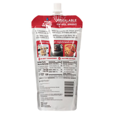 Eagle Brand Sweetened Condensed Milk - Shop Baking Ingredients at H-E-B Shop Eagle Brand Sweetened Condensed Milk - compare prices, see product info & reviews, add to shopping list, or find in store. Select locations now offer curbside pickup & home delivery ... Nutrition Facts. Sweetened Condensed Milk. About 10 Serving Per Container. Serving Size: 2.00 tbsp(39g) Amount Per Serving. Calories: 130: